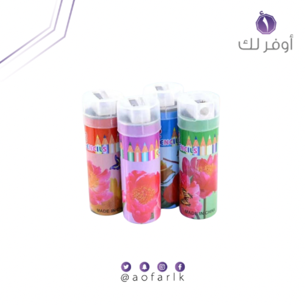 علبة ألوان خشبيه مع مبراة عددة اشكال