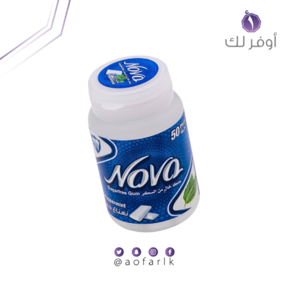 علكة مضغ بنكهة النعناع خالية من السكر من نوفا، معباة في برطمان، 50 قطعة